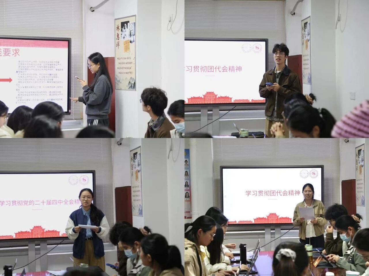 研究生团总支副书记林欣然领学共青团厦门大学第十六次代表大会精神。她表示,学院共青团员要扛起历史重任,勇担时代使命,牢牢扎根中国大地,争做有理想的“囊萤”青年,敢担当的“笃行”青年,能吃苦的“凌云”青年,肯奋斗的“自强”青年,奋力书写为中国式现代化挺膺担当的青春篇章。