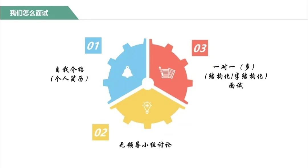 随后,蒋老师从面试的基本结构和流程、各部分测试所占比重和考察目的进行解析,重点讲述了自我介绍、无领导小组讨论、和一对一、一对多结构化/半结构化面试的注意事项和应对技巧。