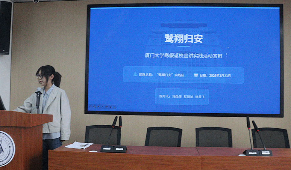 为全面梳理实践育人成效,擘画新学期实践育人蓝图,3月23日,我院2026年寒假社会实践答辩大会在海韵园A102学术报告厅顺利举办。学院本科生辅导员黄诗玲、校院两级社会实践相关负责人及各实践队代表参与此次大会。