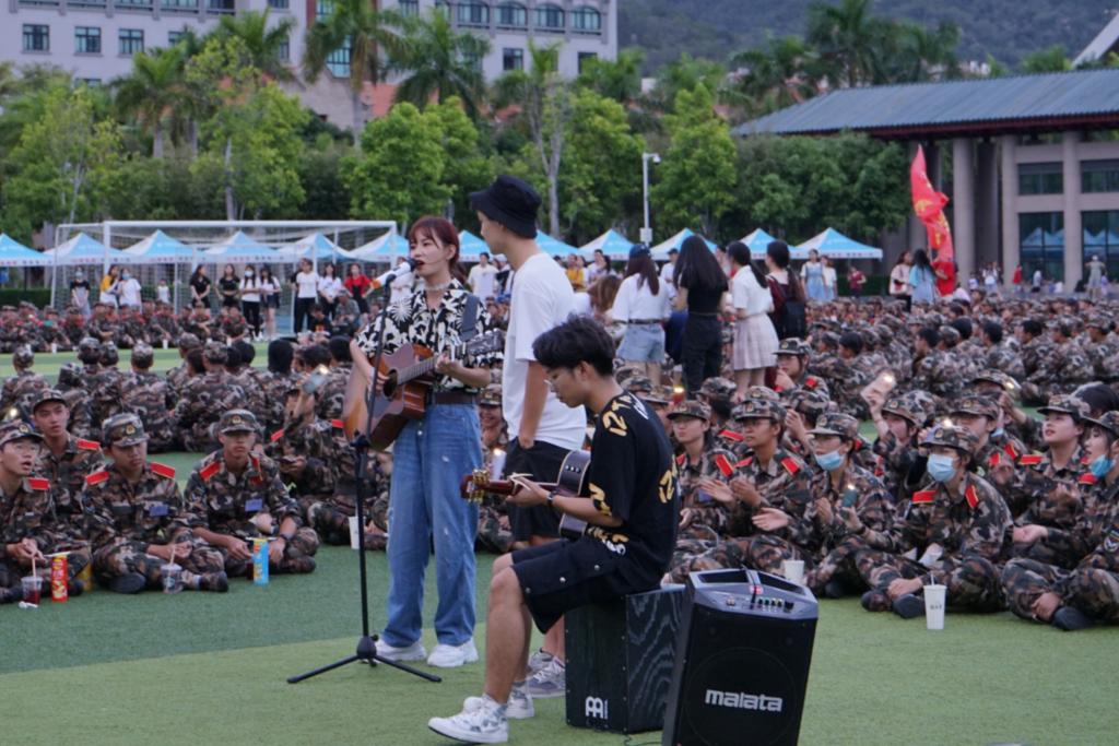 慰问中,学长学姐和教官们带来了近二十个精彩的文艺节目。