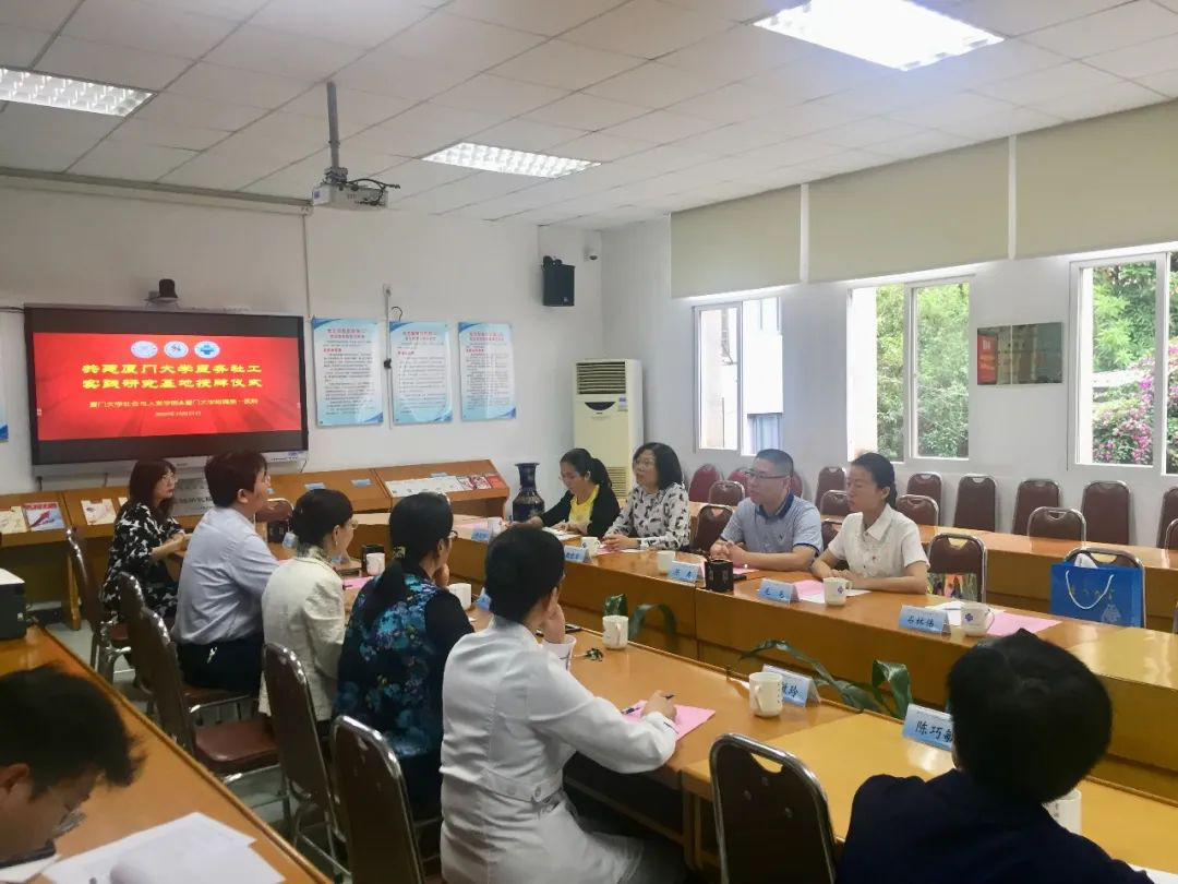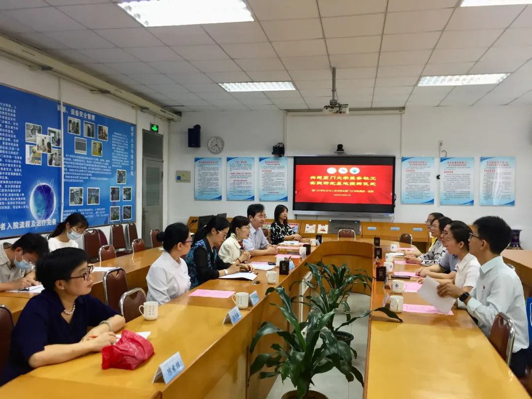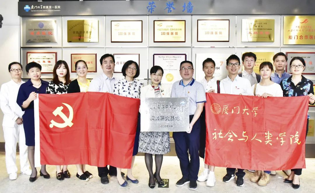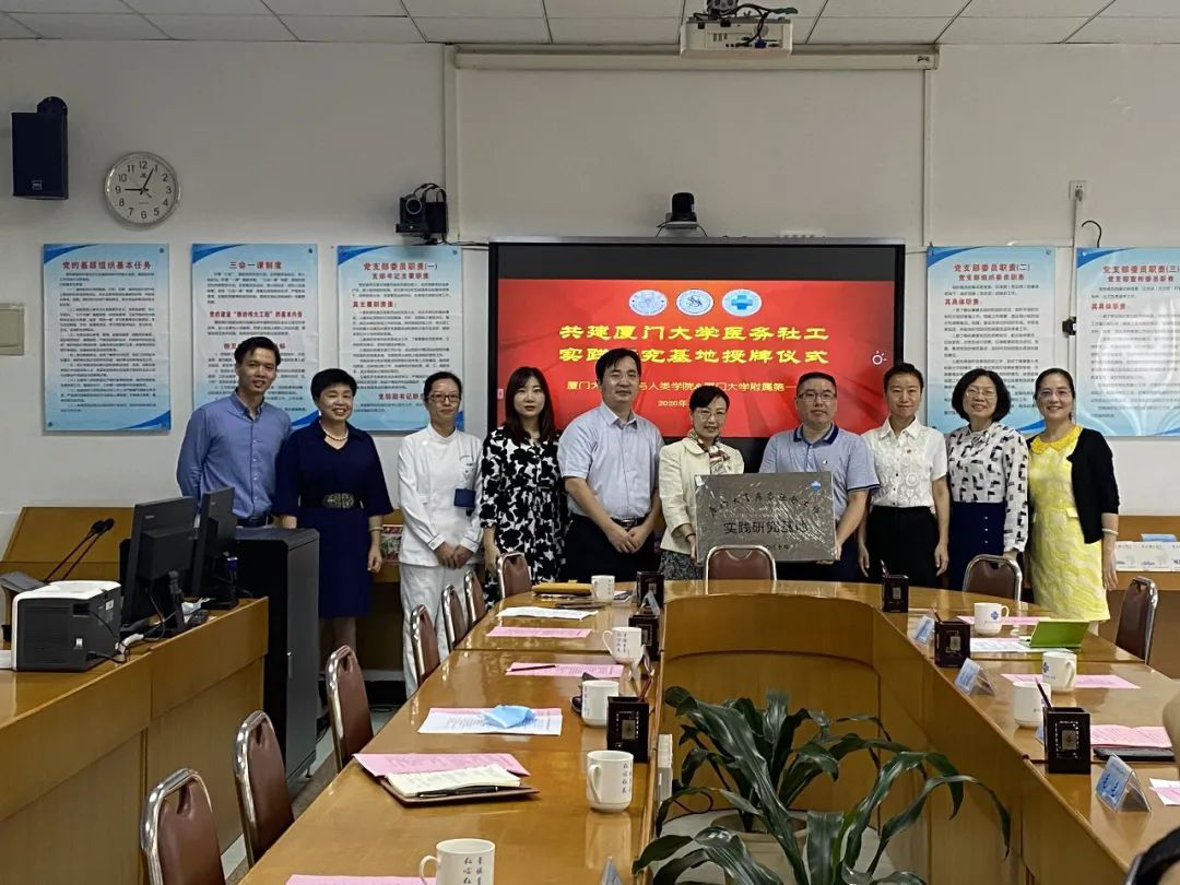 2020年10月21日上午,厦门大学社会与人类学院与厦门大学附属第一医院在第一医院科教楼218会议室举行“共建厦门大学医务社会工作实践研究基地”授牌交流仪式。出席活动的有学院党委副书记陈夷、副书记毛毛老师、社工系副系主任魏爱棠教授、团委书记石林伟老师、社工系郑思明老师以及厦大MSW实习生代表。第一医院党委副书记林勤、党群工作部主任朱珊娜、肾内科副主任胡伟平、肾内科护士长连敏玲、护理教研室陈素锦、医务部陈林艳、党群工作部柯文强等院方代表一同参加。会议由第一医院党委副书记林勤主持。