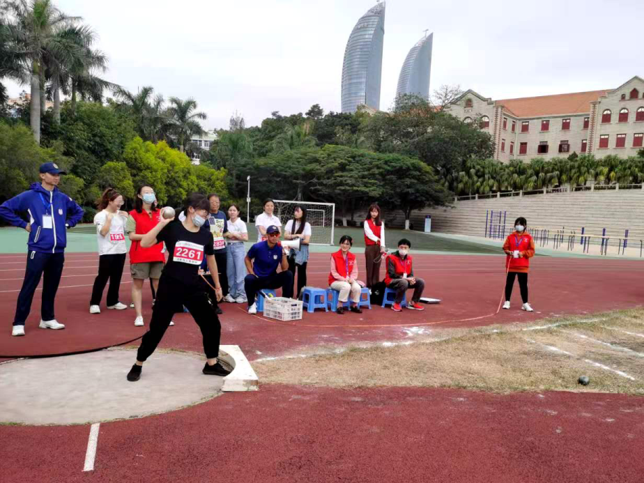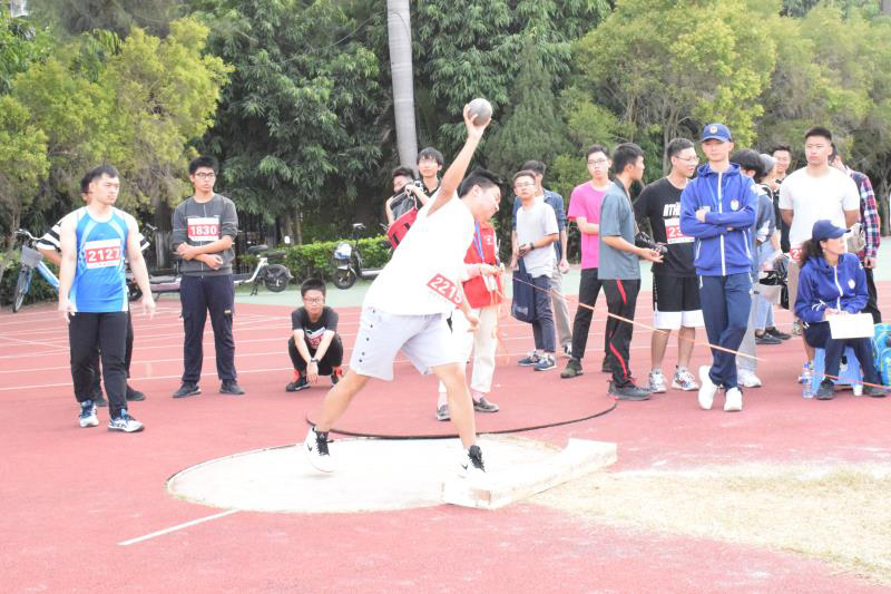 男子本科生组铅球选手卢瑞琪、艾力木拉提