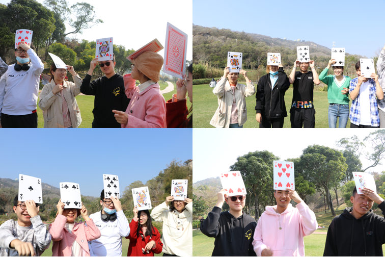 “扑克牌排序”,每个小伙伴都抽取一张牌,用手举在自己的额头前,大家可以互相看到别人的牌,唯独看不到自己的牌。大家充分运用聪明才智和团队协作,完美地按照花色和数字大小进行排序。
