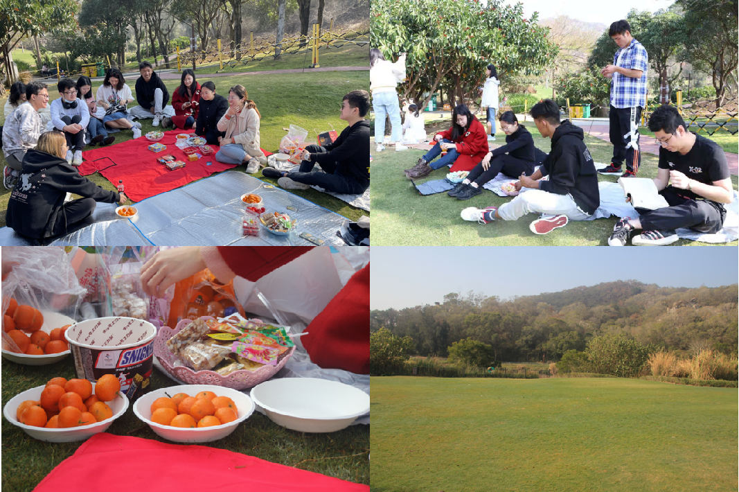 活动现场也为大家准备水果和小零食。大家聚在一起,在草坪上席地而坐,玩桌游、聊天、阅读,其乐融融。也有的同学选择在四周散步,感受大自然的亲切。