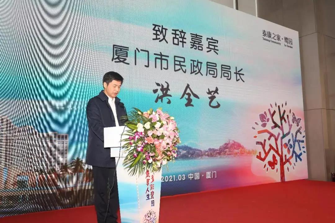 厦门市民政局局长洪全艺致辞指出,泰康之家·鹭园从高品质养老需求出发,引入国际标准CCRC模式,将助力厦门养老服务产业升级,补齐厦门高品质养老服务短板。希望泰康之家·鹭园紧紧围绕老年人的实际健康需求,针对长辈不同身体状况,以活力养老、文化养老、健康养老、科技养老为特色,为长辈提供高品质享老生活方式。