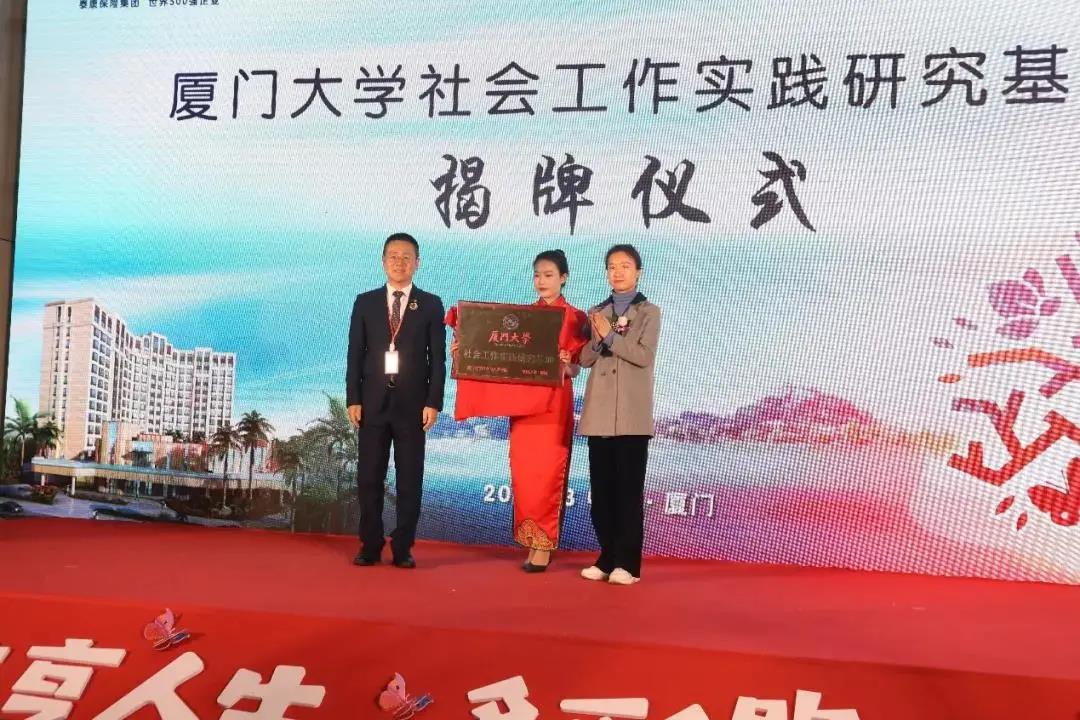 厦门市委原常委、厦门老年大学校长詹沧洲、厦门市政协原副主席黄学惠、福建省民政厅原副巡视员、省养老康复协会会长翁建国、厦门市民政局局长洪全艺、厦门市卫健委副主任林刚,厦门保险行业学会秘书长游国华、厦门保险行业协会副秘书长郑福森,厦门大学离退休处副处长周一钦、厦门大学社会与人类学院党委副书记毛毛、集美大学法学院党委书记黄煜等领导和嘉宾出席。我院社会学系副教授常青松、社会工作系助理教授张洋勇、辅导员冉丽莎共同出席本次活动。
