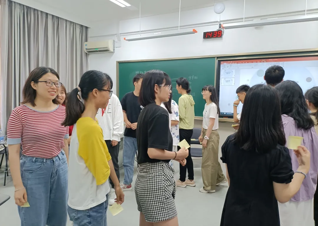 沙龙伊始,邱老师让同学们在便利贴上分别写下形容自己的三个词语和一个动物形象,并通过互换纸条、分享解读的方式让大家进一步认识自己、认识彼此,活跃现场氛围。