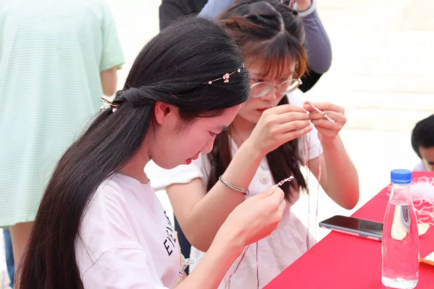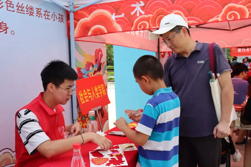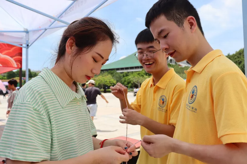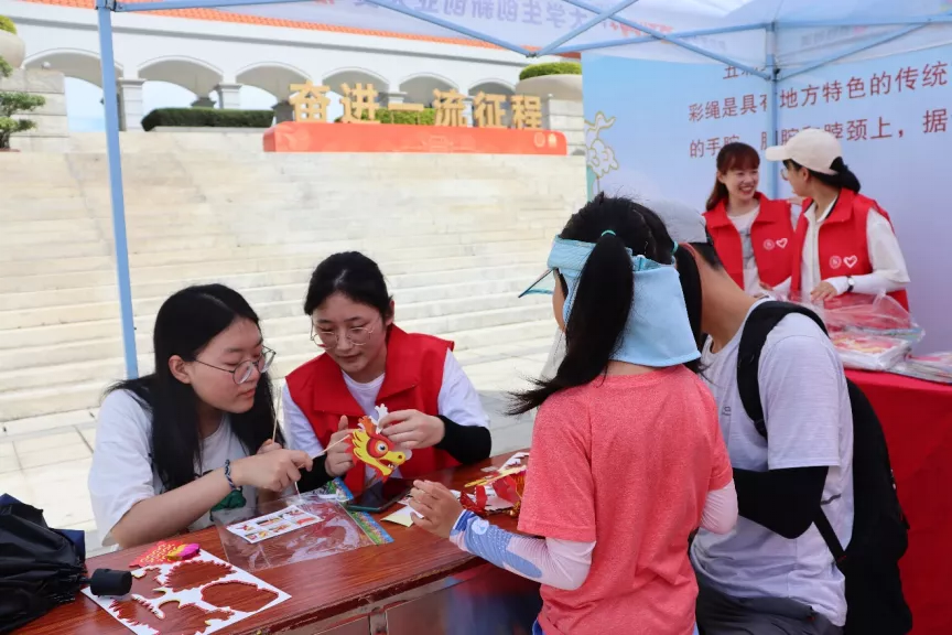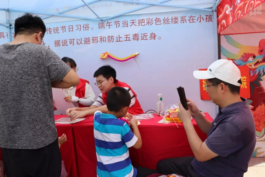 6月14日上午9:00,厦门大学“我们的节日·端午节庆”活动启动,我院师生积极参与到现场组织工作中,负责“五彩绳”的民俗体验摊位。热闹的广场上,我院志愿者展开笑颜,为参与活动的师生热情服务。他们主要负责龙舟模型的材料发放与制作指导以及五彩绳的材料发放。参与活动的师生亲自体验五彩绳的制作,以赠送亲友,祈愿避邪和防止五毒近身。