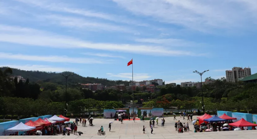 开阔的嘉庚广场上,参与活动的人,来来往往,络绎不绝