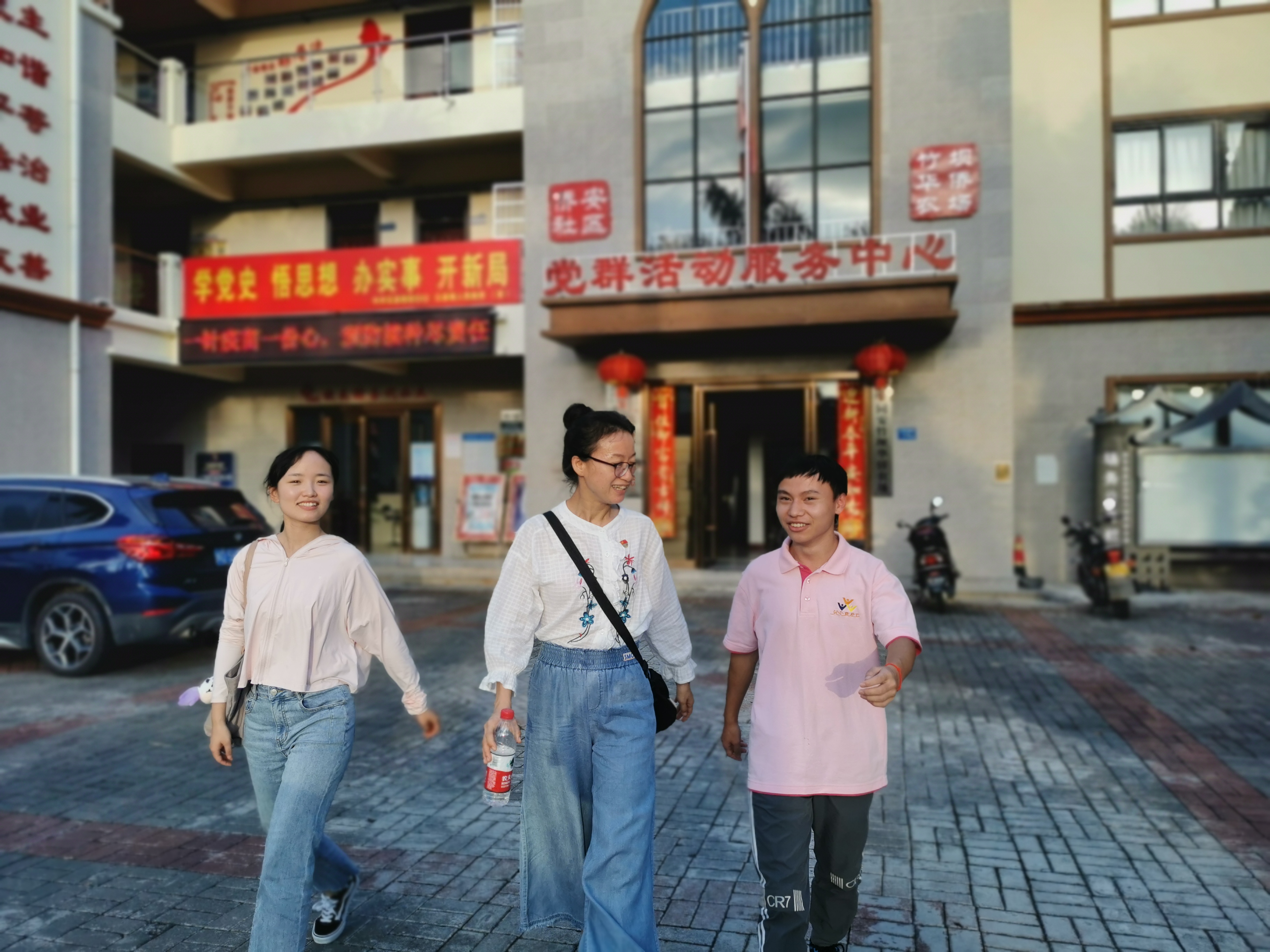 老师们走访的第二站是厦门市沁心泉社会工作服务中心驻同安侨安社区“益创竹坝”乡村振兴助力项目点。我院学生罗永昌就在此实习。沁心泉副总干事肖秀林、侨安社区主任许春梅详细介绍了侨安社区成立近三年来开展的服务工作。侨安社区由原竹坝华侨农场改制而来,一直是国家安置归侨的地方,浓郁的南洋风情是其独特的文化特点。建社区以来,社区和社工双社协同从近邻便民服务、美丽庭院营造等居民需求入手,培养了村民“社区人”意识和居民自治志愿者队伍,取得了良好服务成效。听取社区介绍后,童敏教授肯定其做法的同时,也建议其可以学习成都地区社会组织培育经验,以不同类型邻里互助组织为抓手推进项目向前发展。