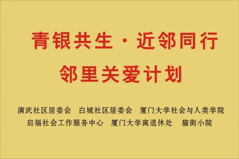 本次邻里关爱计划,关注居住在白城、演武社区不能独立出行、空巢独居的厦大离退休“宅老”长者,在启福社工、助老员、社工老师的指导下,以厦门大学社会与人类学院大学生志愿者为主力,开展持续性、主题性的入户关爱服务,以期加强“宅老”们的社会联系。