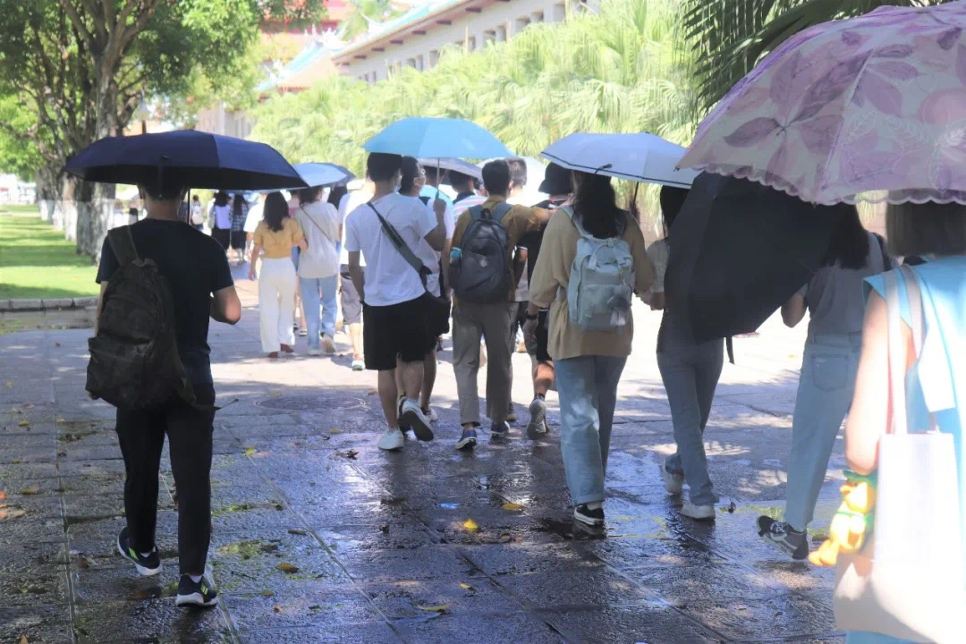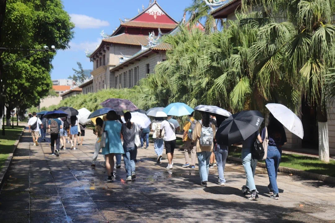 9月11日上午,我院2021级研究生在志愿者的引导下游览校园,熟悉校园环境。骄阳似火,暑热不减,厦园中时不时吹过热风,但同学们热情依旧。