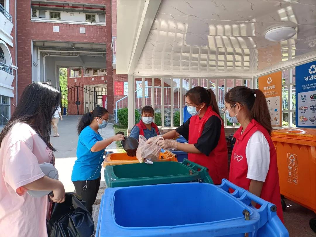在校内食堂倡导打包避免堂食聚集时期,为营造安全、有序、整洁、卫生、优雅的宿舍环境,本科生党支部众志成城,紧急成立芙蓉13垃圾分类督导小分队。党员和入党积极分子志愿者身着红色小马甲,活跃在宿舍园区垃圾分类的重要关卡,进行垃圾分类督导工作,为在特殊时期保持环境卫生、减少生活污染而不懈努力。