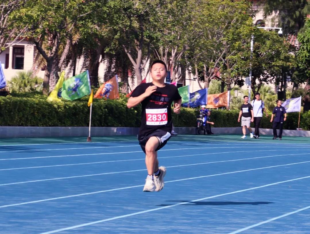 挥汗如雨,热血沸腾,在跑向终点后,唐晓宇同学呐喊到:“感谢厦大,永爱厦大”,他一圈一圈不懈奔跑的身姿诠释了青春的意义在于拼搏,汗水的挥洒、彩旗的飞扬、老师同学们的呐喊助威激励着他奔赴终点。