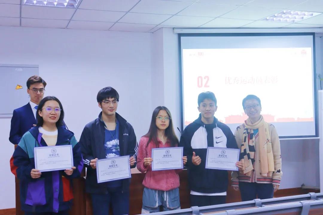 2021年11月25日,厦门大学第56届学生田径运动会社会与人类学院表彰大会在曾呈奎楼B205教室顺利召开,学院党委副书记毛毛老师、团委书记石林伟老师、本科生辅导员冉丽莎老师及全体运动员代表共同参加本次活动。活动由2021级本科生木扎帕尔与朱玥蒨主持。