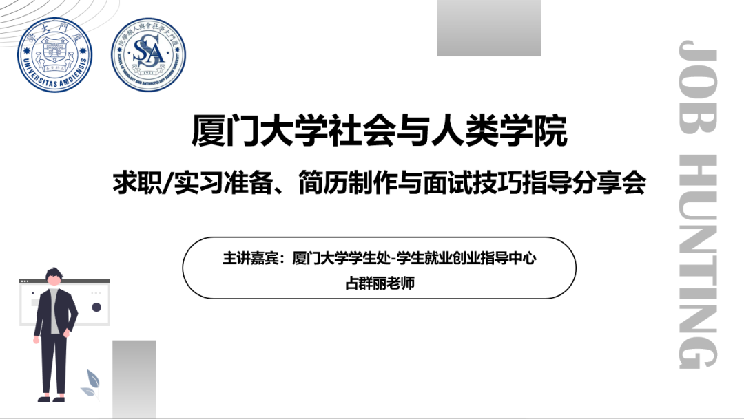 本次分享会中,厦门大学学生处-就业创业指导中心占群丽老师就同学们所关心的求职准备、简历制作与面试技巧等内容作了分享和指导。