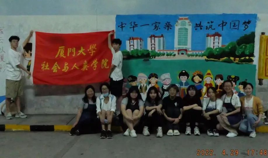 感谢学院党委副书记毛毛老师、社会学系副教授阳妙艳老师、辅导员冉丽莎老师,她们也都是厦门大学“石榴籽”相关项目的指导老师,感谢学院宣传中心杨雨、黄星劼、朱嘉楠、贺之瑶、强子睿、范郁丹、何欣然以及所有关心涂鸦宣传墙创作的老师和同学们!