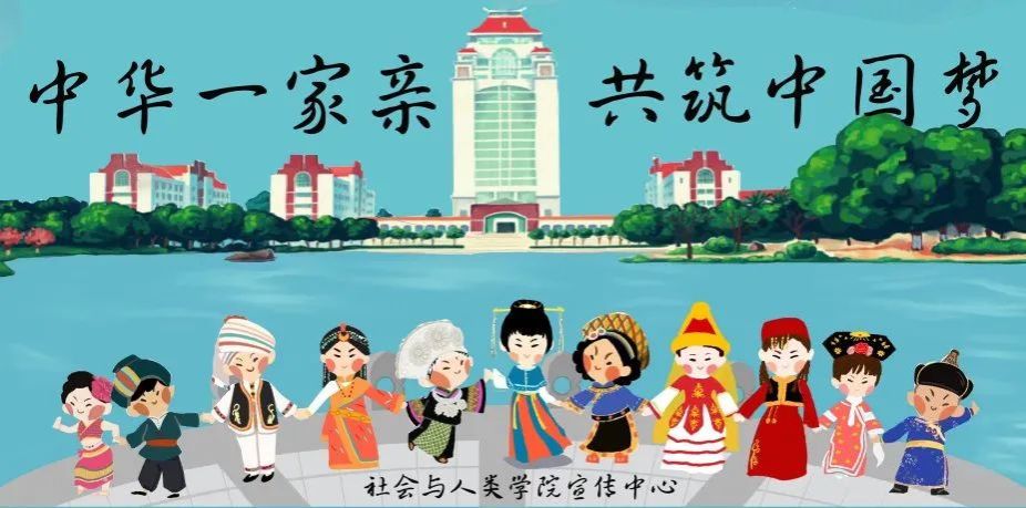 社会与人类学院宣传中心美工部成员2021级本科生贺之瑶以“石榴籽紧密相拥”为创作主题,以厦门大学颂恩楼群为背景,以各民族青年学子手拉手表达手足情深、守望相助,像石榴籽一样紧密相拥的深切情谊,深刻诠释“中华民族一家亲,同心共筑中国梦”的文化深义。