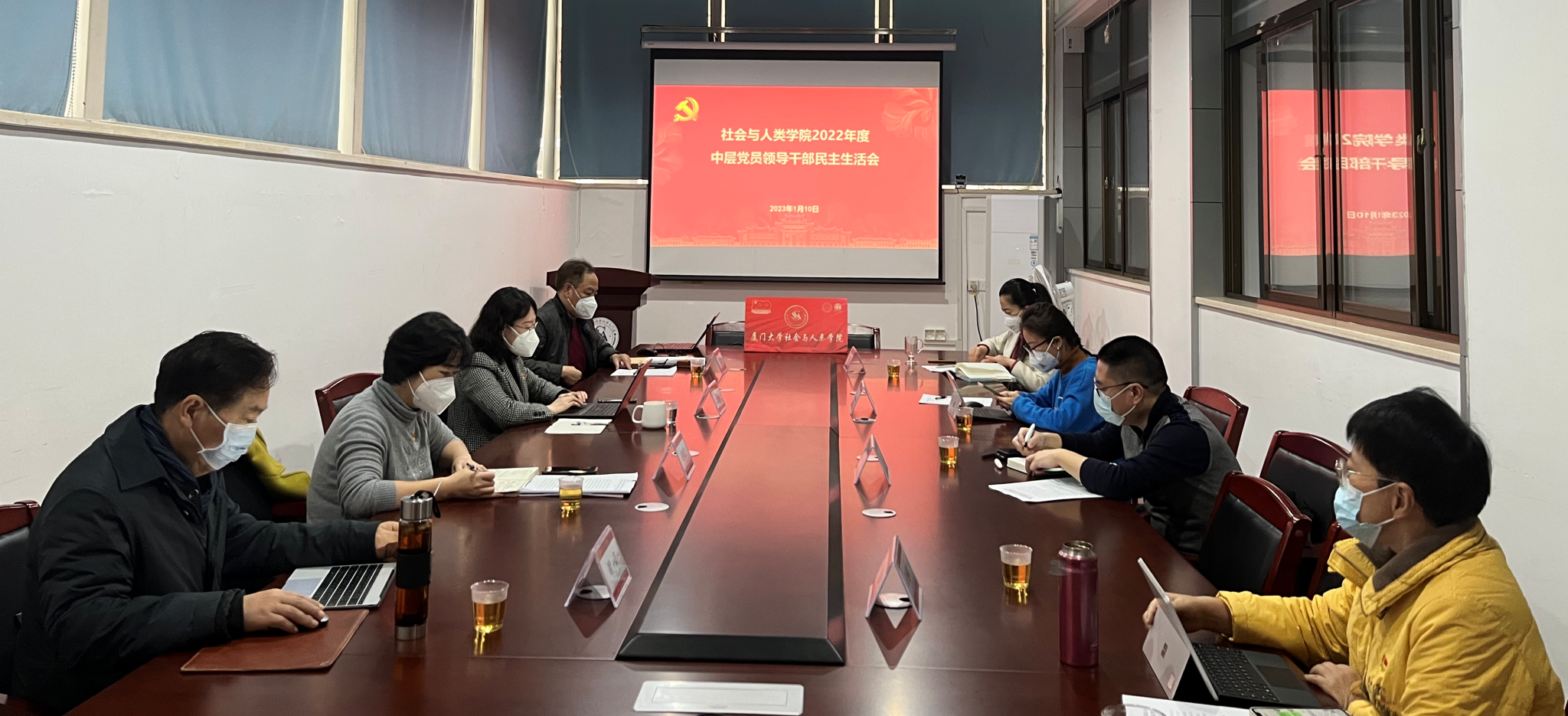 1月10日上午,社会与人类学院在曾呈奎楼B栋206会议室召开2022年度中层党员领导干部民主生活会。厦门大学2022年度中层党员领导干部民主生活会第二督导组副组长赵晓慧到会指导。厦门大学专职巡视员谢银辉、社会与人类学院党委书记王晓丽,党委副书记陈夷、毛毛,党委委员、副院长徐延辉、冯文晖参加会议。社会与人类学院院长胡荣及学院有关人员列席会议。会议由王晓丽主持。
