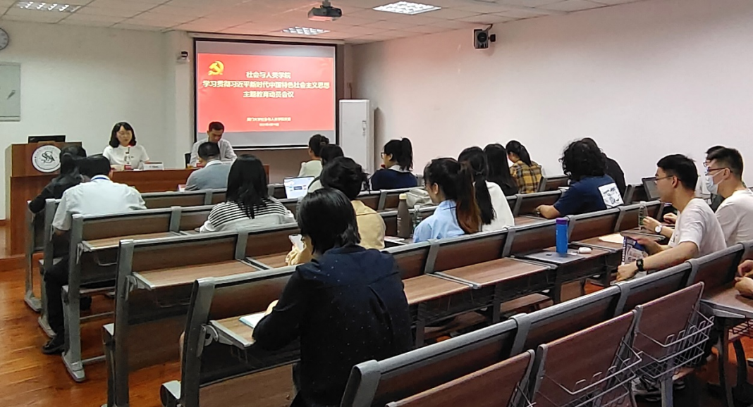 4月19日上午,社会与人类学院在曾呈奎楼B栋205教室召开学习贯彻习近平新时代中国特色社会主义思想主题教育动员会议。社会与人类学院党委书记王晓丽主持会议,并对社会与人类学院开展学习贯彻习近平新时代中国特色社会主义思想主题教育进行动员部署。厦门大学第二巡回指导组副组长李招淡到会指导。社会与人类学院党员处级领导干部,学院党委委员,学院师生党支部书记、支部委员,党务秘书,师生党员代表等参加本次会议。