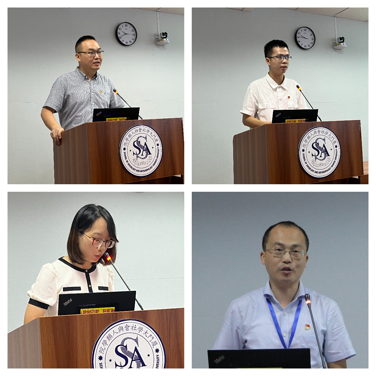 获奖代表优秀共产党员常青松、林景坡,优秀党务工作者邱莹,先进基层党组织——社会工作系研究生党支部书记王安胜先后上台发言,讲述个人成长,分享学习体会,交流党务工作经验,展望未来工作方向,激励在场党员同志坚定理想信念,强化责任担当。