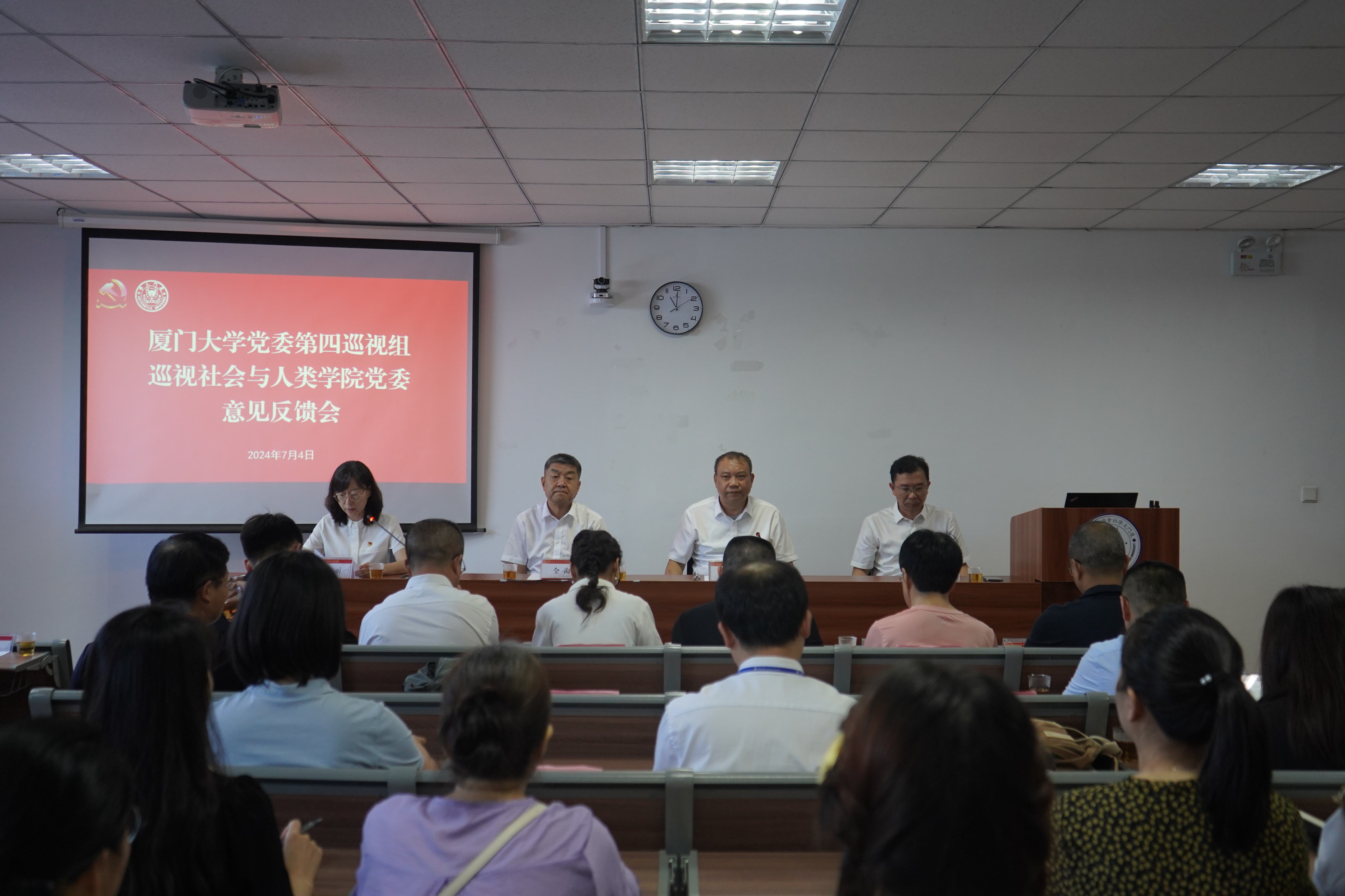 王康平首先代表第四巡视组向社会与人类学院反馈巡视意见。他指出,社会与人类学院党委落实立德树人根本任务,近年来努力提升学院办学质量、扩大学科影响力,取得一定工作成效。但巡视也发现了一些问题和不足,主要是:院党委主体责任落实工作存在不足,党组织建设存在短板,引领学科发展和人才培养工作存在不足,人才队伍建设工作有所欠缺,上一轮巡视问题整改不够到位等。他强调,社会与人类学院要科学谋划,凝聚共识,全面落实学院党委主体责任;要全面加强党的领导,深入推进基层党组织建设;要凝练学科特色,提升人才培养质量;要培优引优,打造具有核心竞争力的人才队伍。