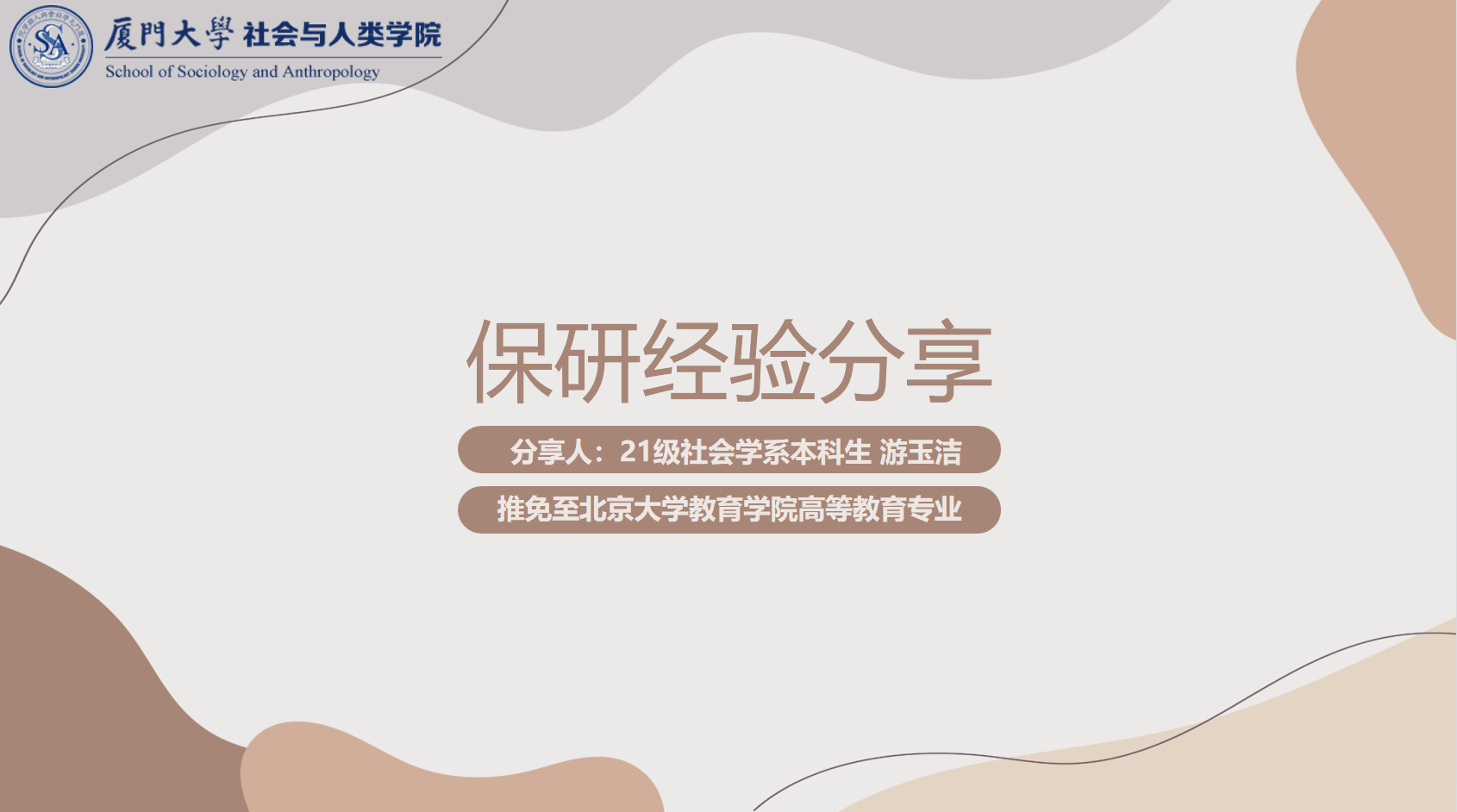 2021级社会学专业本科生游玉洁向大家介绍了保研工作的基本流程,详细分享了自己申请北大、人大、南大三所高校的准备经验,她建议同学们多看书多积累、借助AI工具练习英语口语、尽早熟悉科研经历,为继续深造打下坚实基础。