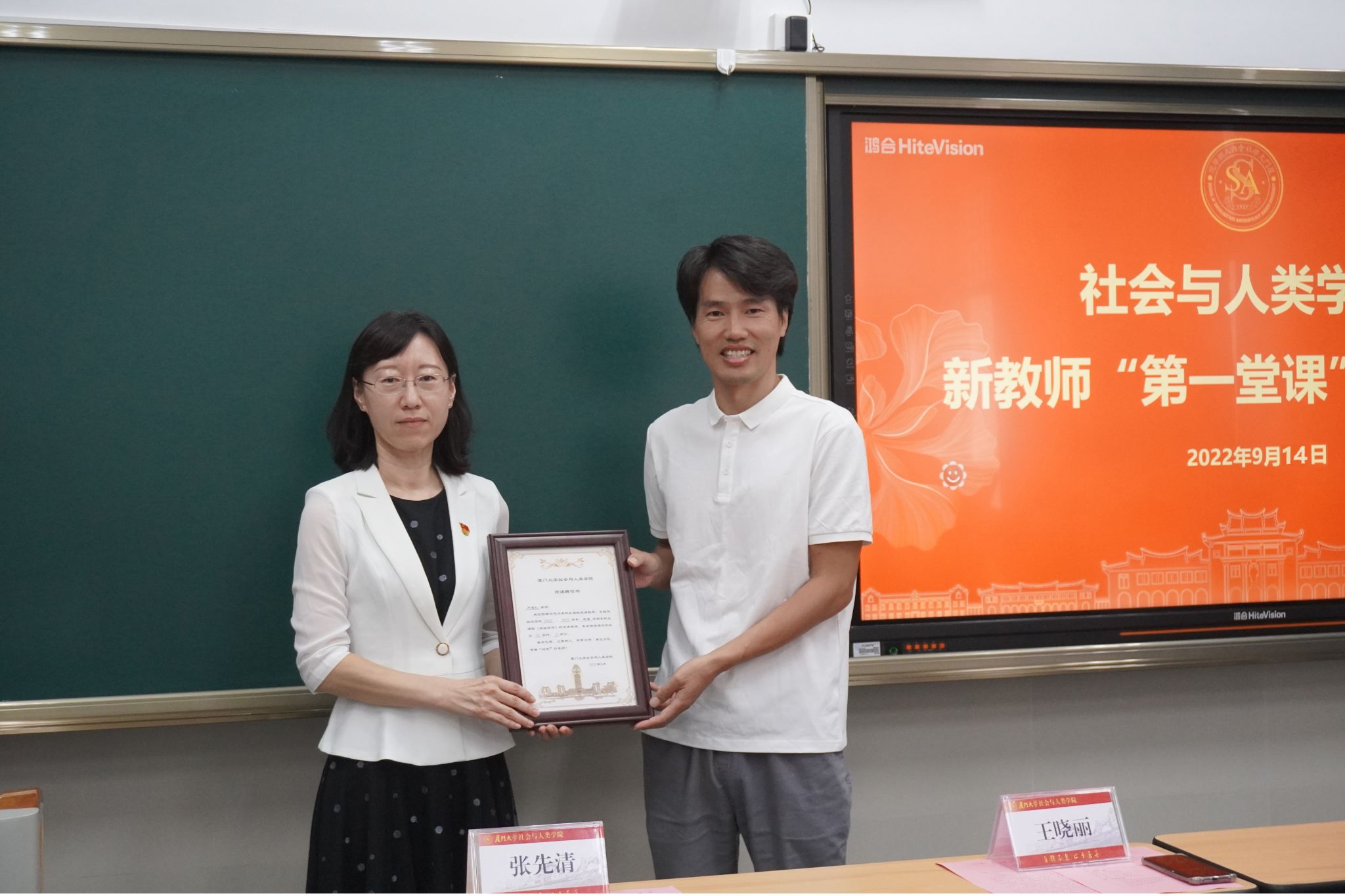 为进一步健全师德师风建设长效机制,增强新引进教师职业荣誉感、责任感和使命感,社会与人类学院于近日在南强二407、嘉庚四303,分别为卢成仁、黄晓星两位新入职教授举行“第一堂课”荣荐仪式。学院党委书记王晓丽、副院长张先清、冯文晖、办公室主任、人事秘书、教学秘书等出席。