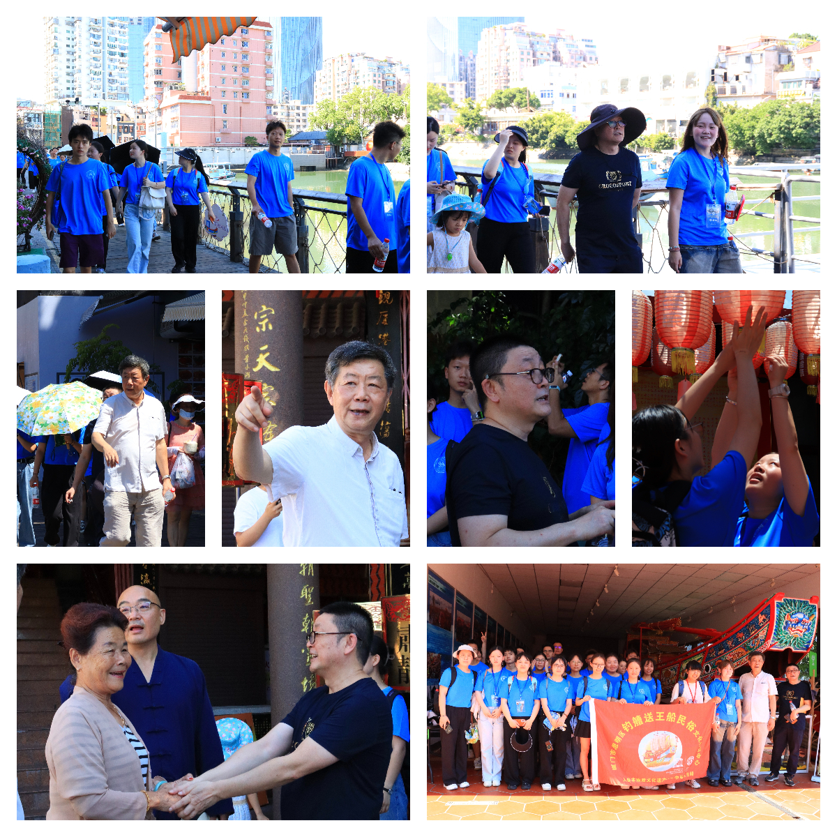石奕龙老师、杨晋涛老师带领营员们前往沙坡尾朝宗宫、活态展示馆、厦港海洋文化展示厅实地调研。石老师以朝宗宫门口石碑上的记载为引,讲述了朝宗宫的建立故事,声情并茂地介绍朝宗宫的历史发展。进入庙宇,石老师逐一介绍了朝宗宫的内部陈设,帮助营员们更好地了解朝宗宫。杨老师着重讲解了国家级非遗项目——送王船,营员们在老师和馆内讲解志愿者的指引下参观了龙珠殿及王船相关的陈列。通过探访沙坡尾,营员们对厦门的民俗文化有了更深层次的了解。