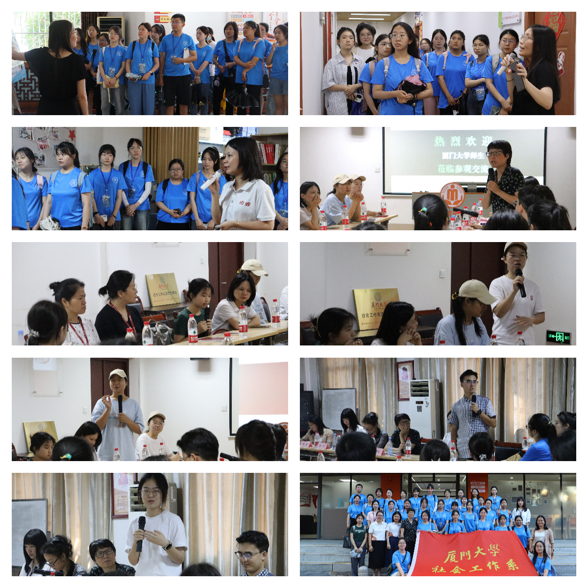 社会工作系的营员们在魏爱棠老师、徐蕾老师的带领下,来到湖里区社会组织服务园,深入了解厦门市社会工作服务的发展历程。机构秘书长从园区的基本信息、基地建设、湖里区社会工作发展情况、所获荣誉四个方面向营员们全方位介绍了湖里区社会组织服务园的起源、发展和空间分布。营员们还参观了霞辉老年社会服务中心、培善社会服务中心和社会组织服务园青年之家等服务机构,了解有关老年人和青少年等特殊群体的个案服务方法。社会工作系副主任魏爱棠老师、机构执行主任李楚、本研实习生以及营员们都对未来社工学习和就业发表了自己的看法。