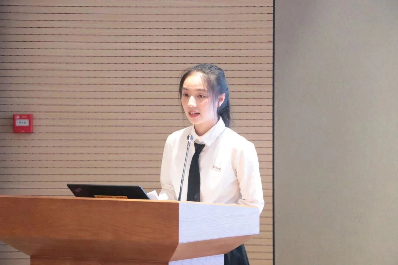 2023级新生代表张伟晶同学发言。站在新的人生起点上,她感谢厦门大学给予的宽广平台,亦为与新同学们的相遇欣喜不已。她认为,身着“大学生”这一全新面貌,更应坚持初心、不负韶华,秉承“爱国、革命、自强、科学”的优良校风,成为一个不负民族、不负国家的“厦大人”。