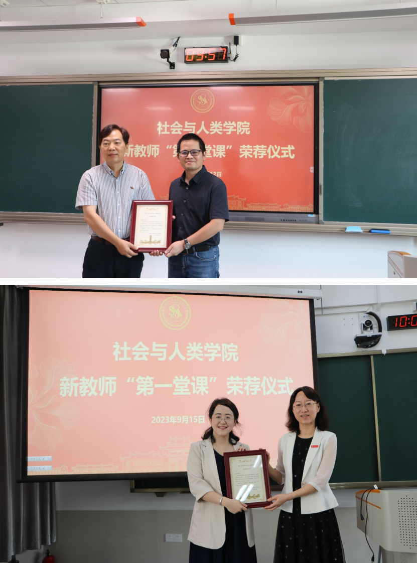为进一步健全师德师风建设长效机制,增强新引进教师职业荣誉感、责任感和使命感,2023年9月12日、9月15日,学院党委书记王晓丽、院长胡荣、副院长徐延辉、冯文晖分别前往新教师在厦门大学第一次授课的教室,为王利兵、李潇举行“第一堂课”荣荐仪式,以满满的仪式感见证新教师在厦教书育人生涯序幕的开始。