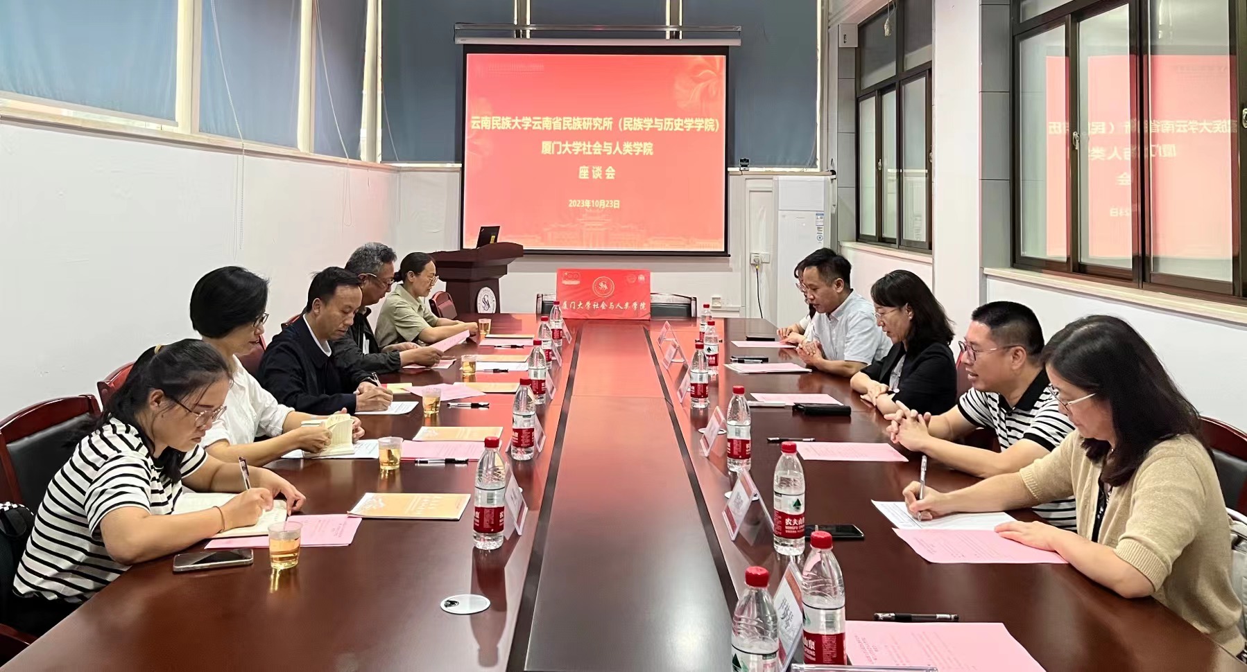 10月23日下午,云南民族大学云南省民族研究所(民族学与历史学学院)所长(院长)黄彩文一行5人来访,并和学院座谈交流。云南民族大学云南省民族研究所(民族学与历史学学院)所长(院长)黄彩文,党委副书记、纪委书记李欣,副院长丁桂芳,研究生培养与科研管理办公室主任陶迪,本科教学办公室副主任李萌;厦门大学社会与人类学院党委书记王晓丽、党委副书记陈夷、人类学与民族学系主任龚浩群、人类学与民族学系主任助理胡荣、本科教学秘书尹梦琴、研究生秘书王雅琳等参加座谈交流。会议由厦门大学社会与人类学院副院长张先清主持。