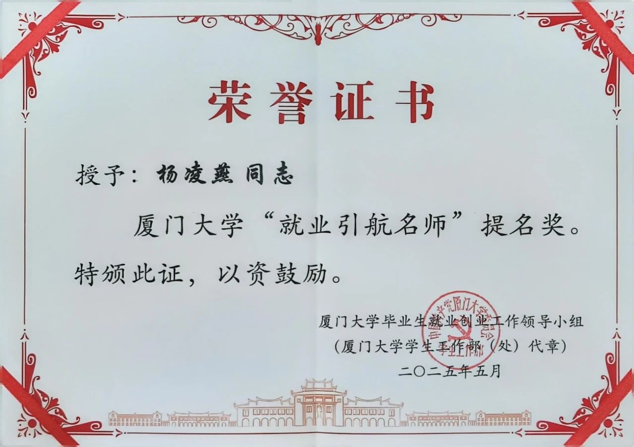 杨凌燕获评第一批厦门大学“就业引航名师”提名奖