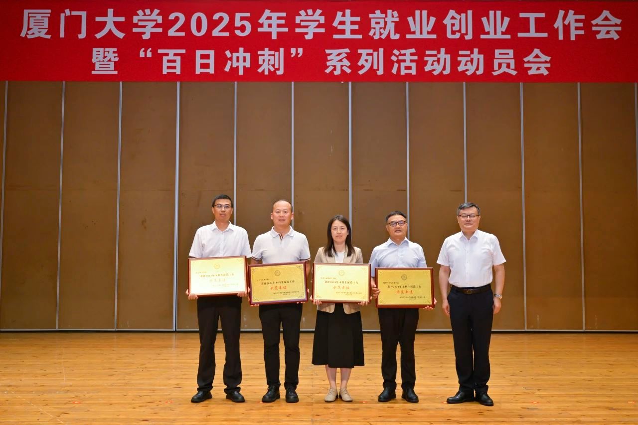 党委书记洪海松(左2)代表学院领取厦门大学2024年“本科生深造工作示范单位”奖