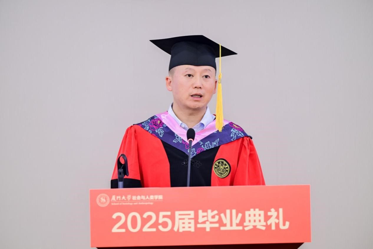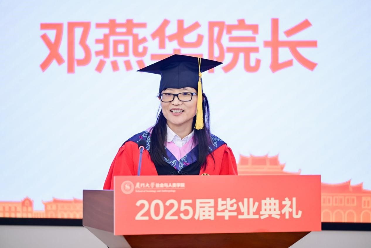 6月16日下午,厦门大学社会与人类学院2025届毕业典礼在海韵园A201报告厅隆重举行。社会与人类学院党委书记洪海松,院长邓燕华教授,原院长胡荣教授,校基层党建工作联络员、学院关工委常务副主任谢银辉,党委副书记陈夷,副院长徐延辉、冯文晖,以及部分教职工代表和2025届毕业生们参加了本次活动。典礼由学院党委副书记毛毛主持。