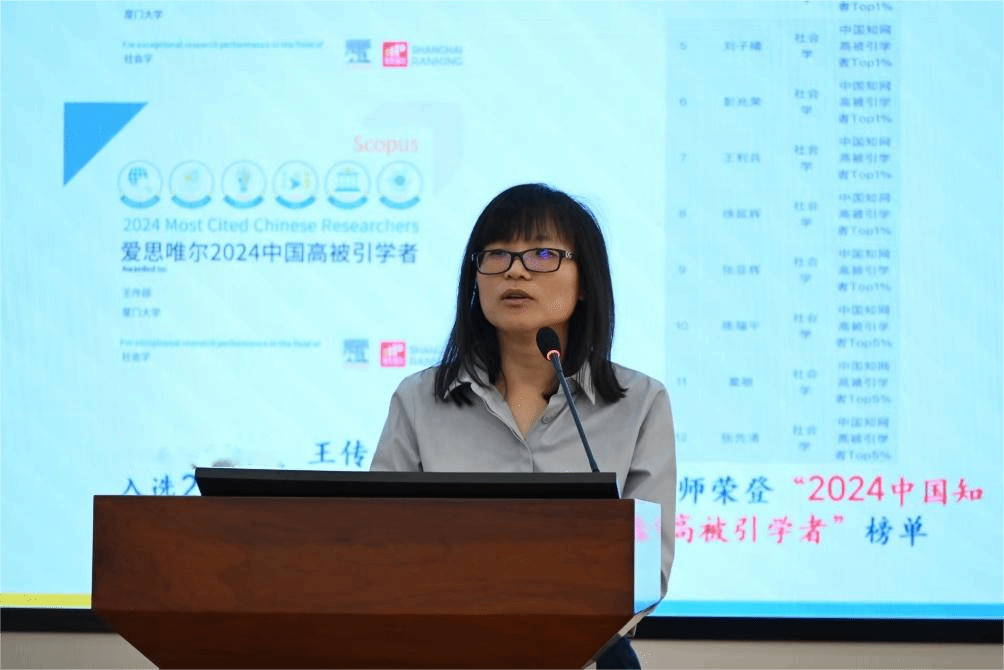 邓燕华作学院2024-2025学年春季学期行政工作总结和“十五五”规划编制情况通报。她回顾了“十四五”期间学院建设发展取得的主要成绩与经验,分析了存在的问题与不足,并从总体工作安排、听取专家建议、工作进展情况等几个方面对学院“十五五”规划编制情况作了详细汇报。