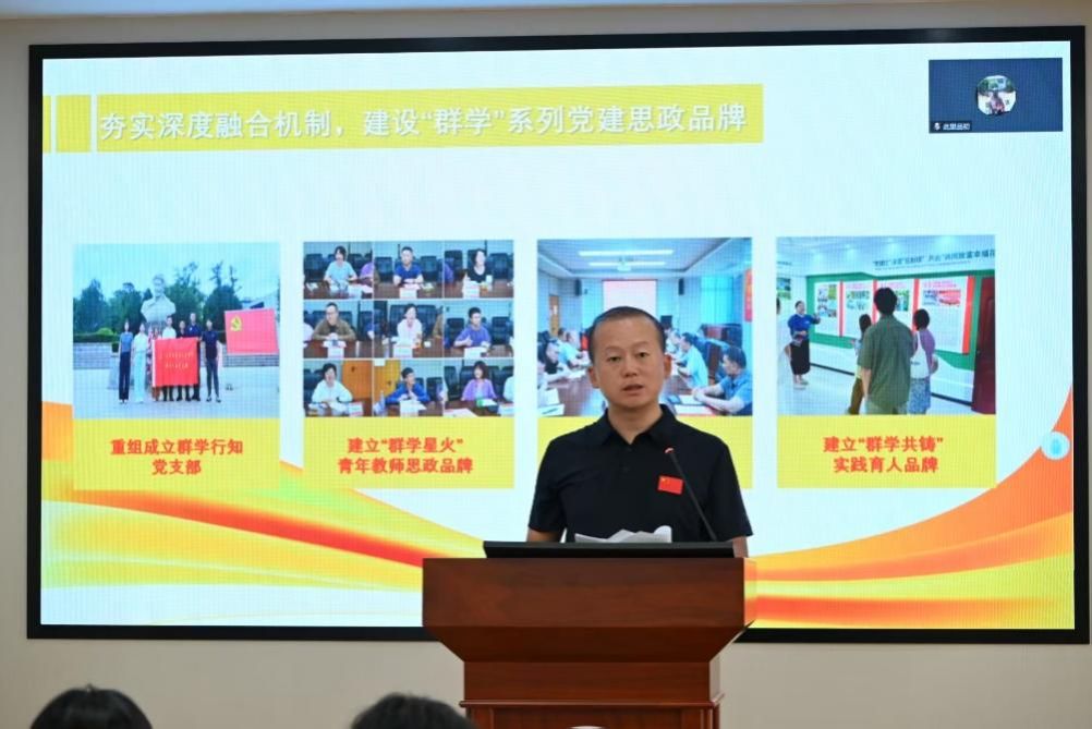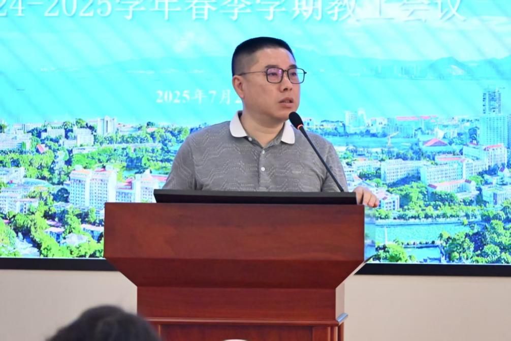 洪海松从扎实开展深入贯彻中央八项规定精神学习教育推动学院事业高质量发展、建设“群学”系列党建思政品牌推动学院党建工作提质创优、构建铸牢思政育人教育体系提升青年学子综合素养、加强有组织科研推动科研工作实现高质量发展等四个方面,对学院春季学期党建工作进行了专题报告。