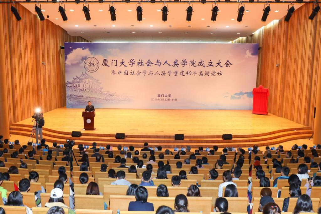 李培林说,40年来,我国经济体制和社会生活都发生了巨变,中国社会学也伴随和参与这种社会巨变,迅速发展、壮大、繁荣,成为学科体系完整、学科门类齐全、专业教学和研究人员众多、并有着广泛社会影响力的一级学科。“问题导向”是中国特色社会学最鲜明的风格,希望厦门大学社会与人类学院以我国发展中的重大理论和现实问题为研究导向,不辱使命、努力工作,为繁荣和发展中国社会学不断做出新的贡献。郝时远、李友梅、中央民族大学民族学与社会学院院长麻国庆也先后致辞,祝贺我校社会与人类学院成立,并从学科建设、研究领域、学术品牌等方面对学院下一步的建设发展提出了希冀和期待。