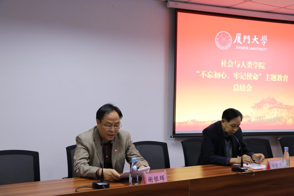 谢银辉强调,要以这次主题教育为新的起点,建立“不忘初心、牢记使命”长效机制,推动学院内涵式高质量发展。他提出对下一阶段工作提出几点要求:一是以政治建设为统领,坚持理论学习常抓不懈;二是坚持用最新理论成果统一思想、指导实践;三是不断提升调研水平,改进工作作风;四是建立和完善规章制度,切实把制度优势转化为办学治院的治理效能,不断提升治理能力。五是坚持立德树人,加快一流学科建设。