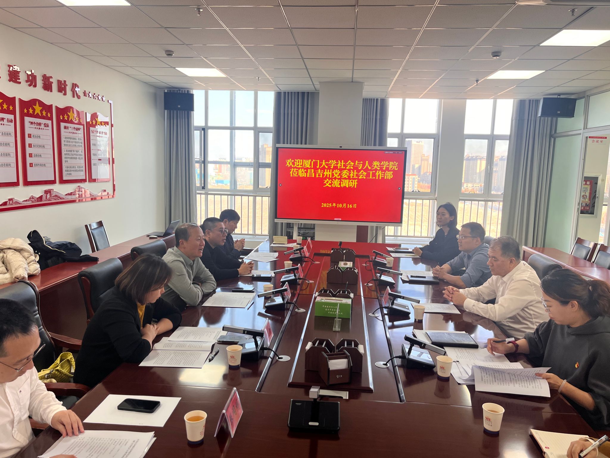 10月16日-17日,调研团先后前往昌吉州党委社会工作部、昌吉州科学技术局、乌鲁木齐市委社会工作部等调研,汇报研习中心成立以来主要工作进展,听取有关部门对研习中心下一阶段工作重点的意见建议。校地双方围绕建立常态化合作机制、推动柔性引才智力援疆、加强社会工作师培训、建设实践基地、强化课题研究等内容展开深入交流。洪海松表示,学院坚持推进“地方政府合作工程”,深入开展文化润疆系列工作,围绕“昌吉所需、学院所能”,选送卢玮副教授入选福建省智力援疆柔性人才引进计划参与昌吉当地社会工作建设,组织昌吉州社会工作者职业资格考试考前冲刺培训并显著提升通过率,开展铸牢中华民族共同体意识专项暑期社会实践活动,选送优秀毕业生参与大学生志愿服务西部计划新疆专项。
