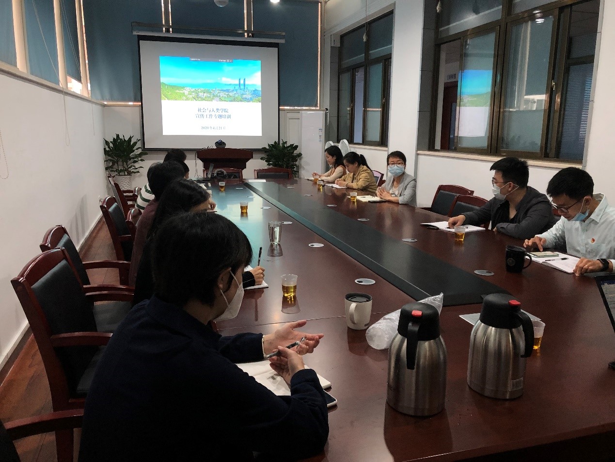 接下来,支部成员、党务秘书刘美君同志带领大家共同学习《厦门大学社会与人类学院宣传工作管理办法(试行)》,从总则、管理体系、工作流程、奖励及惩罚四个部分对本管理办法进行解读,同时详细介绍了学院网站栏目的内容及分工,帮助支部成员熟识日常网站宣传工作开展的程序。随后,学院网站建设技术支持吴友昌也以云端参会的形式向大家强调了网站宣传过程中的注意要点。