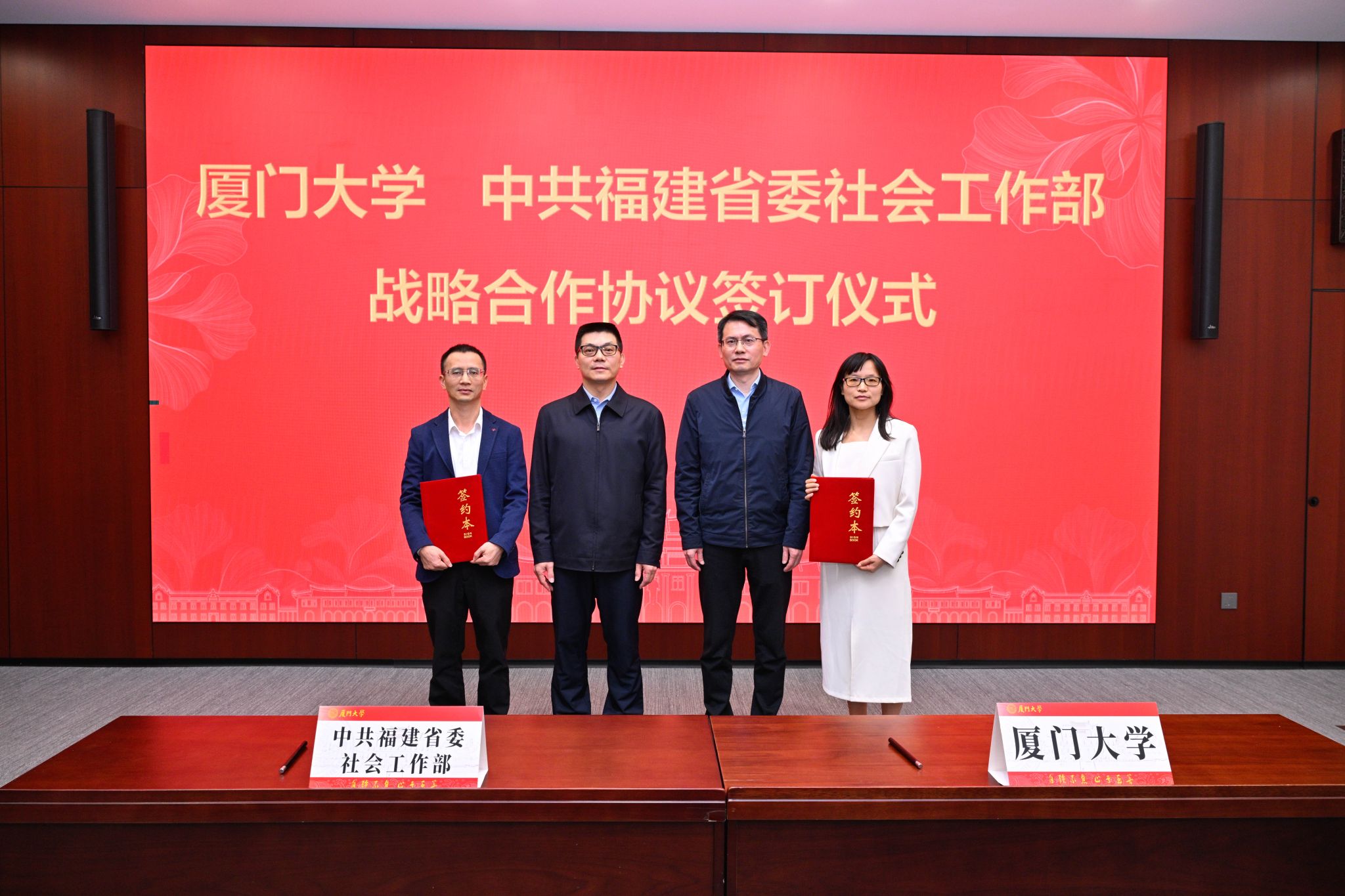 12 月4日,厦门大学与中共福建省委社会工作部举行合作交流座谈会 并签署战略合作协议 。省委社会工作部部长、省委“两新”工委书记程强,厦门大学党委副书记、纪委书记、国家监委驻厦门大学监察专员黄身勇出席活动。