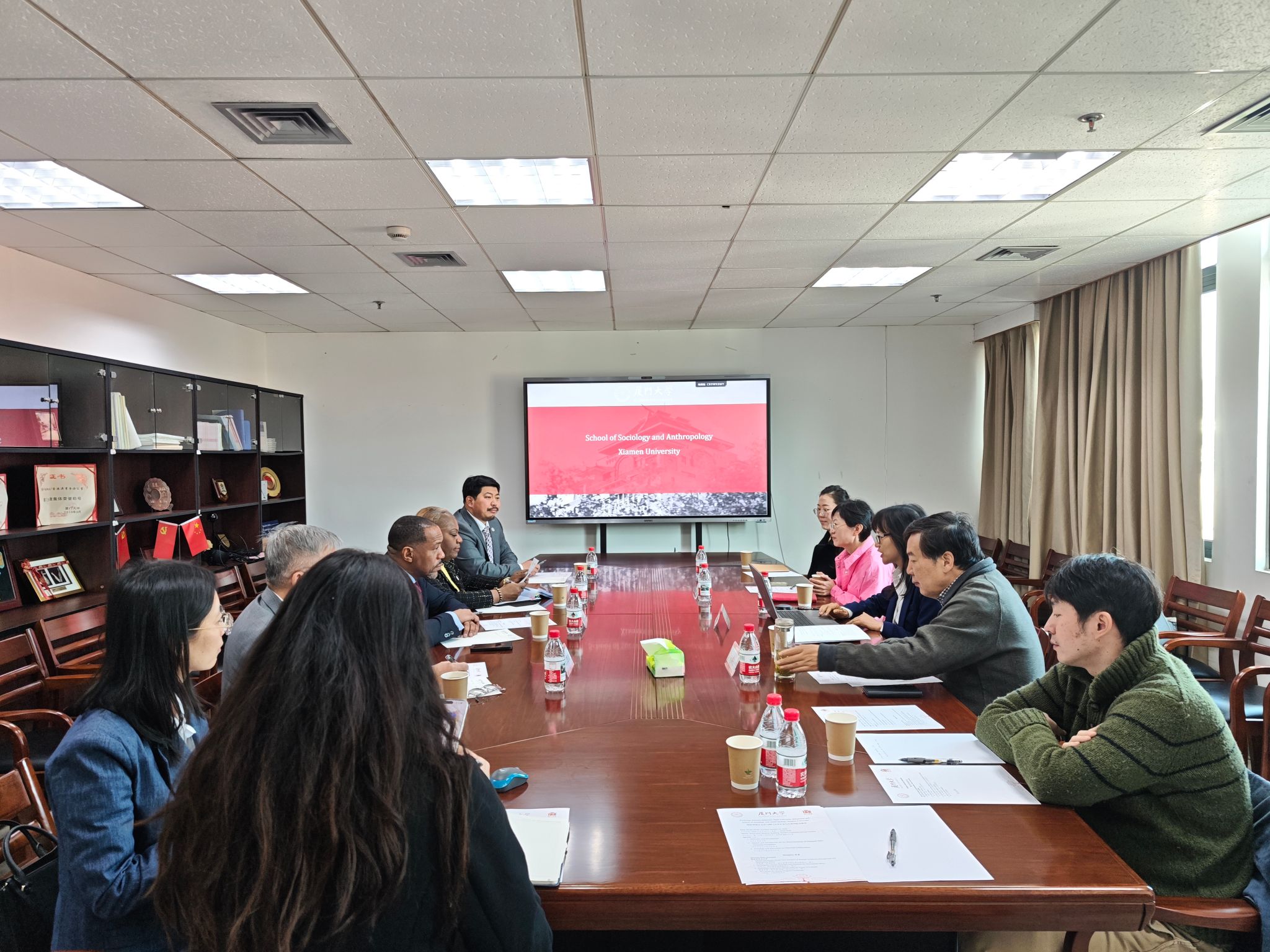 2026年1月13日上午,厦门大学社会与人类学院与美国特拉华州立大学在颂恩楼820会议室举行交流座谈会,参会人员有社会与人类学院院长邓燕华教授、原院长胡荣教授、副院长刘子曦教授、副院长李晋副教授、高馨助理教授;美国特拉华州立大学副校长凯里姆·麦克拉牟、助理副校长刘凤山、研究生院院长格温多琳·斯科特-琼斯、中国项目专员于伟远。