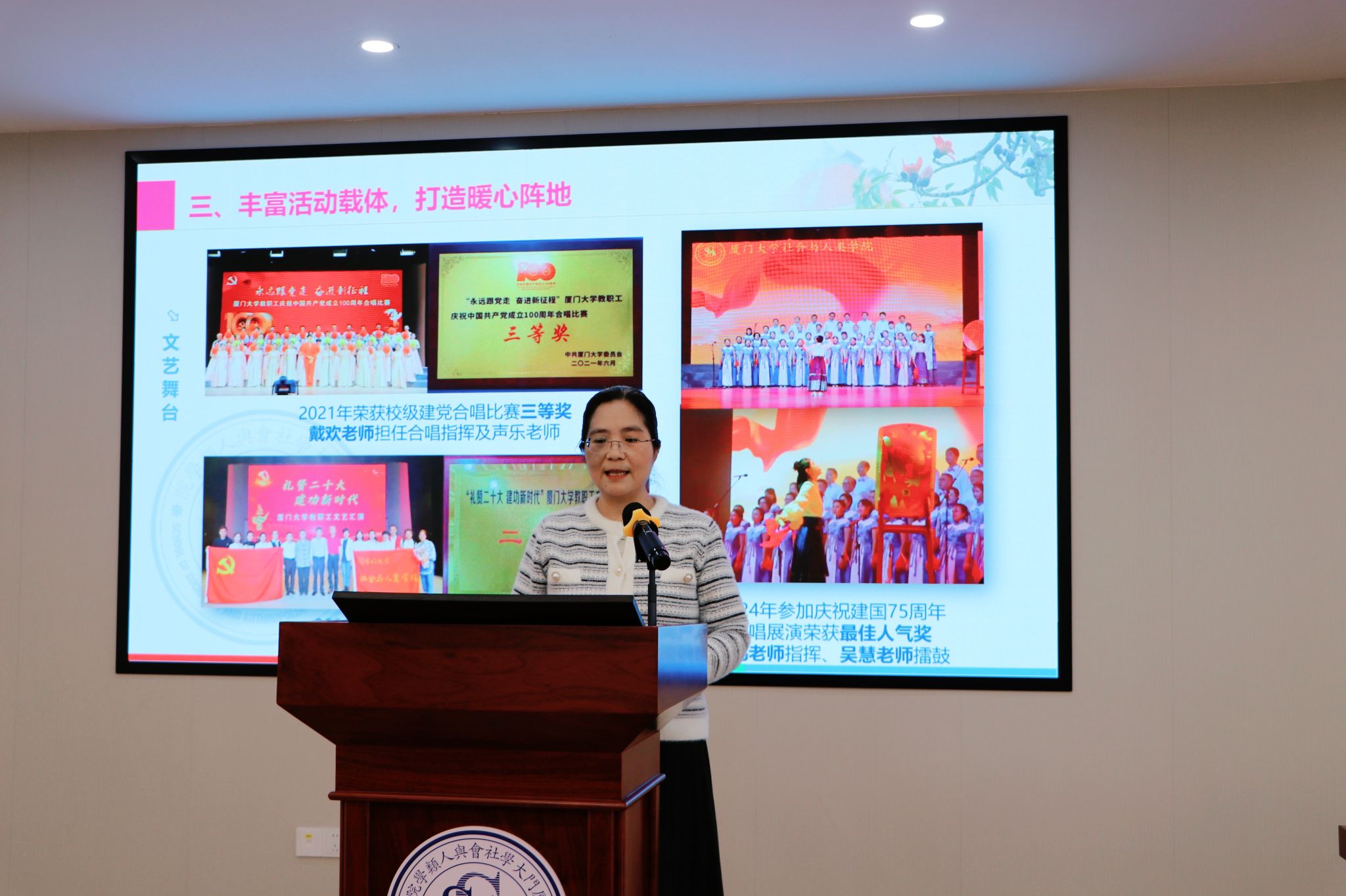 会上,学院妇委会主任郑思明代表第一届妇委会作工作报告。她从夯实组织根基、强化思想引领、丰富活动载体、厚植家风文化、深耕社会服务等方面,全面总结过去五年妇委会工作开展情况并提出对今后工作的建议。