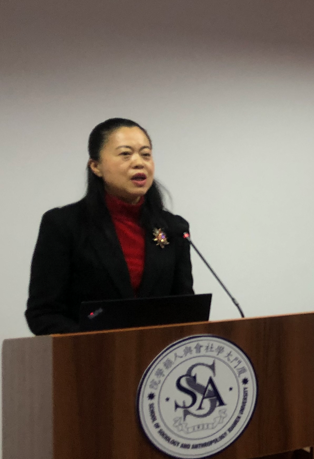 毛毛主要总结了上一年度学生工作、宣传工作以及工青妇工作所取得的进展与成绩。她表示今年将以建党百年、建校百年为契机,进一步扩大学院影响力,建立学院宣传矩阵,开通微信视频号和抖音官方账号,推出院史宣传片、制作学院宣传册、出版《厦门大学社会与人类学院的老师们》等,多角度开展宣传工作,助力学院事业发展。