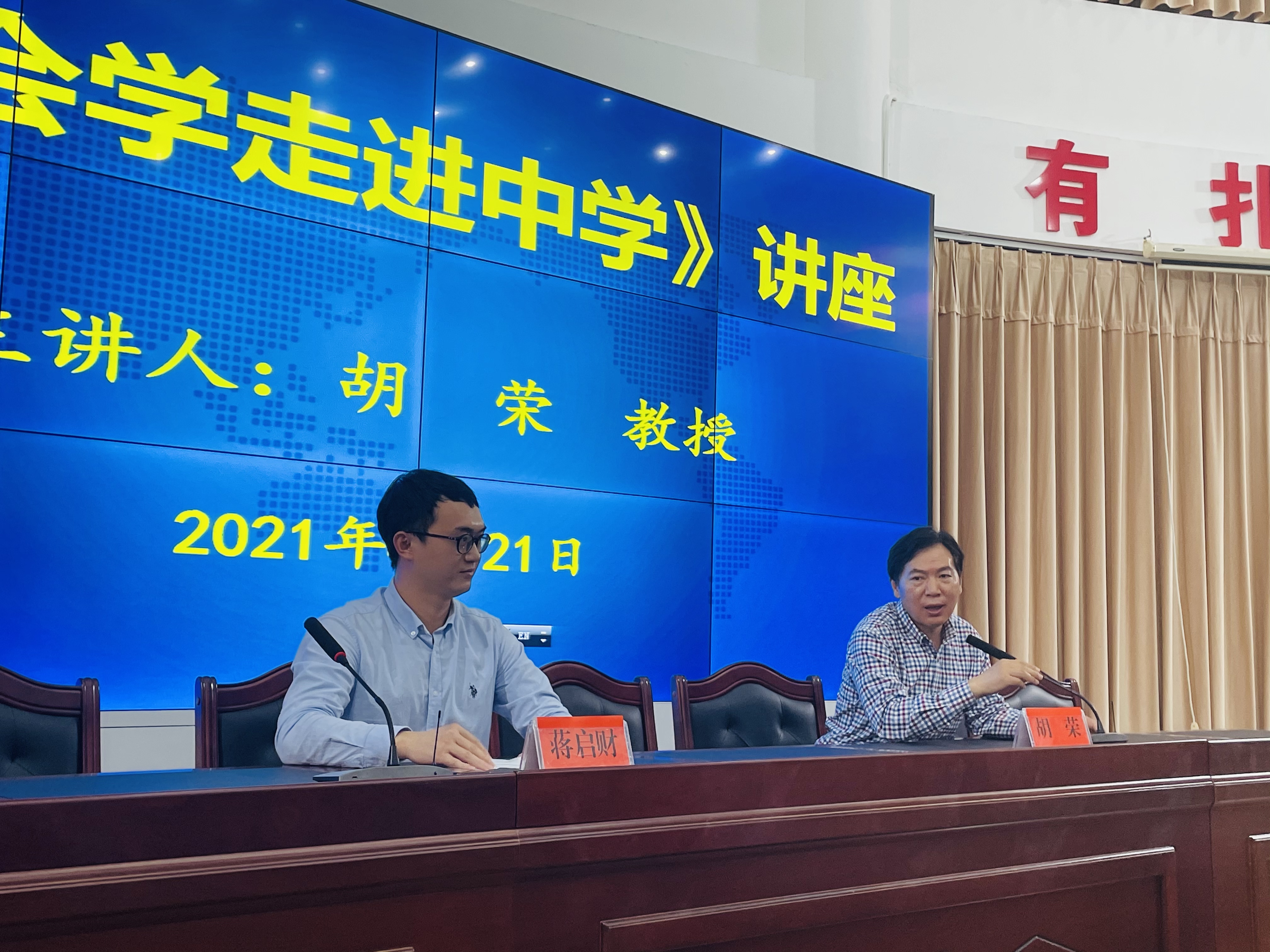 作为我院“社会学走进中学”和学校“相约百年厦大,百名教授进中学”活动的一部分,4月21日晚上,我院院长胡荣教授来到漳州市平和第一中学,给高一的学生做了题为“自学与治学:我的社会学研究”的讲座,受到学生们的热烈欢迎。