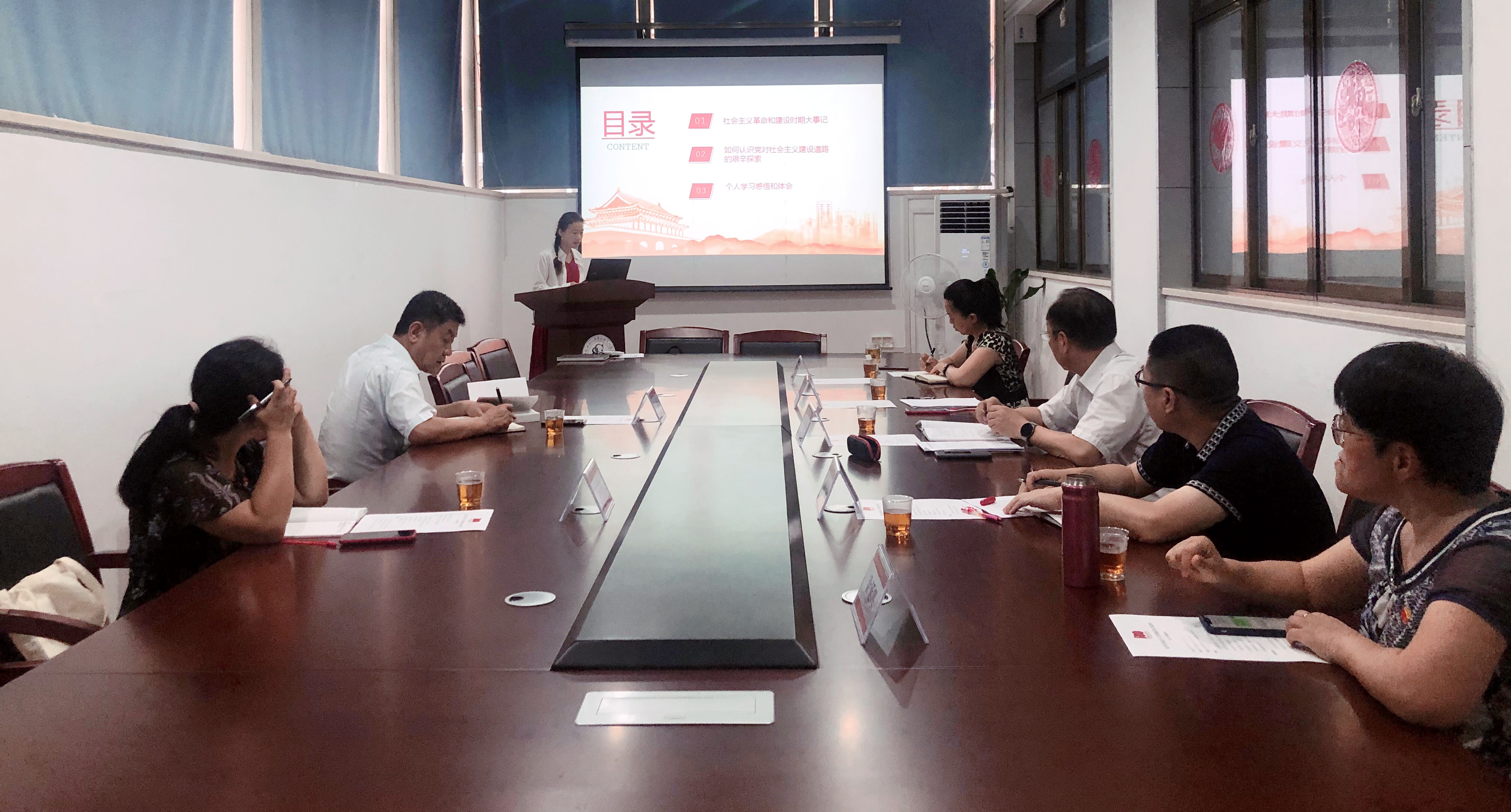 会上,学院党委副书记毛毛首先从重要历史事件入手,再次回顾社会主义革命和建设时期的历史。之后,毛毛结合中央党校李庆刚教授的党史课堂视频讲解,再次带领大家进一步正确认识党对社会主义建设道路的艰辛探索问题。毛毛表示社会主义革命和建设时期对红色精神的传承和发展感悟很深,在这个时期我们在中国共产党的坚强领导和教育引领下,工农兵和知识分子对党的红色历史和精神有了高度认同,在各自的工作岗位上自觉传承雷锋精神、焦裕禄精神等红色精神,我们要在师生中广泛宣传,鼓励他们立足岗位作贡献。