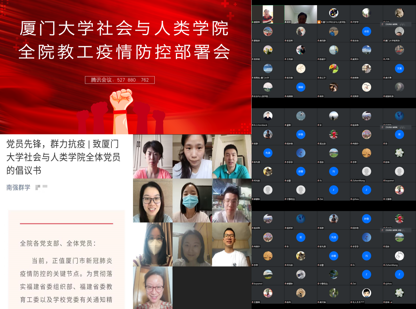 图1:学院多次召开不同层次的防控会议、发出党员倡议书