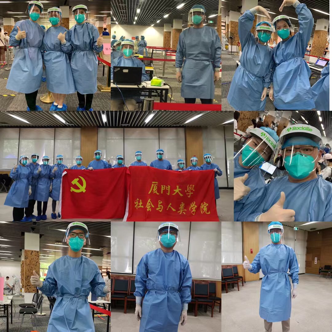 “我是党员,我先上!”9月20日晚,学院接到核酸检测志愿者召集令,3个教工党支部积极响应,仅用不到半小时的时间就组建了一支12人的教工党员核酸检测志愿服务队,投入9月25日思明校区第五轮核酸检测。9月21日4名党员加入学生工作专项应急队伍,下沉凌云2、凌云6、凌云7和芙蓉13学生宿舍区,9月22日2名党员加入学校应对突发疫情应急队伍,24小时在校保障校园防疫工作。9月20日我院本科生党支部紧急成立“SSA青年党员抗疫先锋队”,扎根宿舍园区,帮助同学、服务同学。支部党员和入党积极分子在中秋节当日为学院每间在校学生宿舍发放口罩,并提醒同学们加强防护。同时,先锋队还成立芙蓉13园区小分队和凌云二网格员队伍,在宿舍楼栋做好日常值班、园区垃圾分类督导、卫生和安全隐患排查工作。